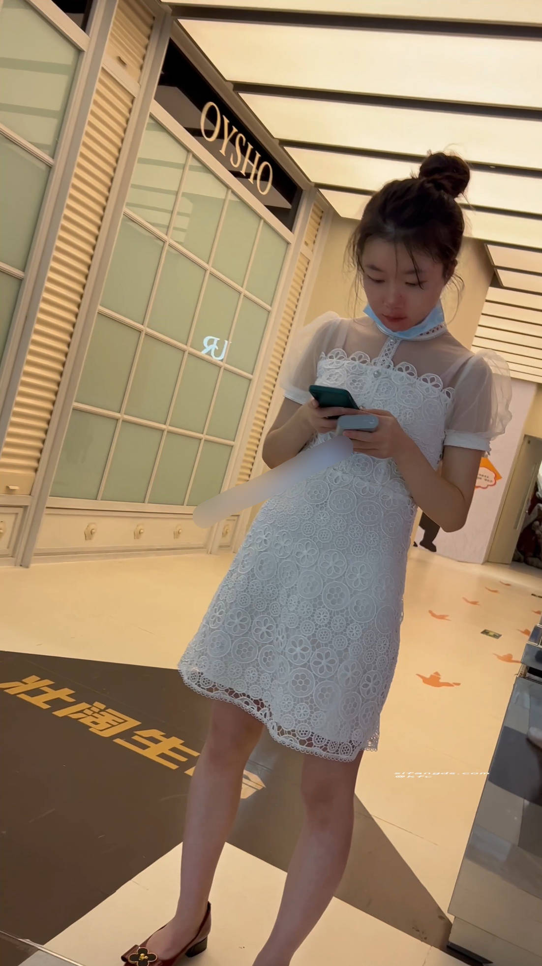 【CSCD】白色连衣裙美女撅着屁股给人拍照,黄色内内