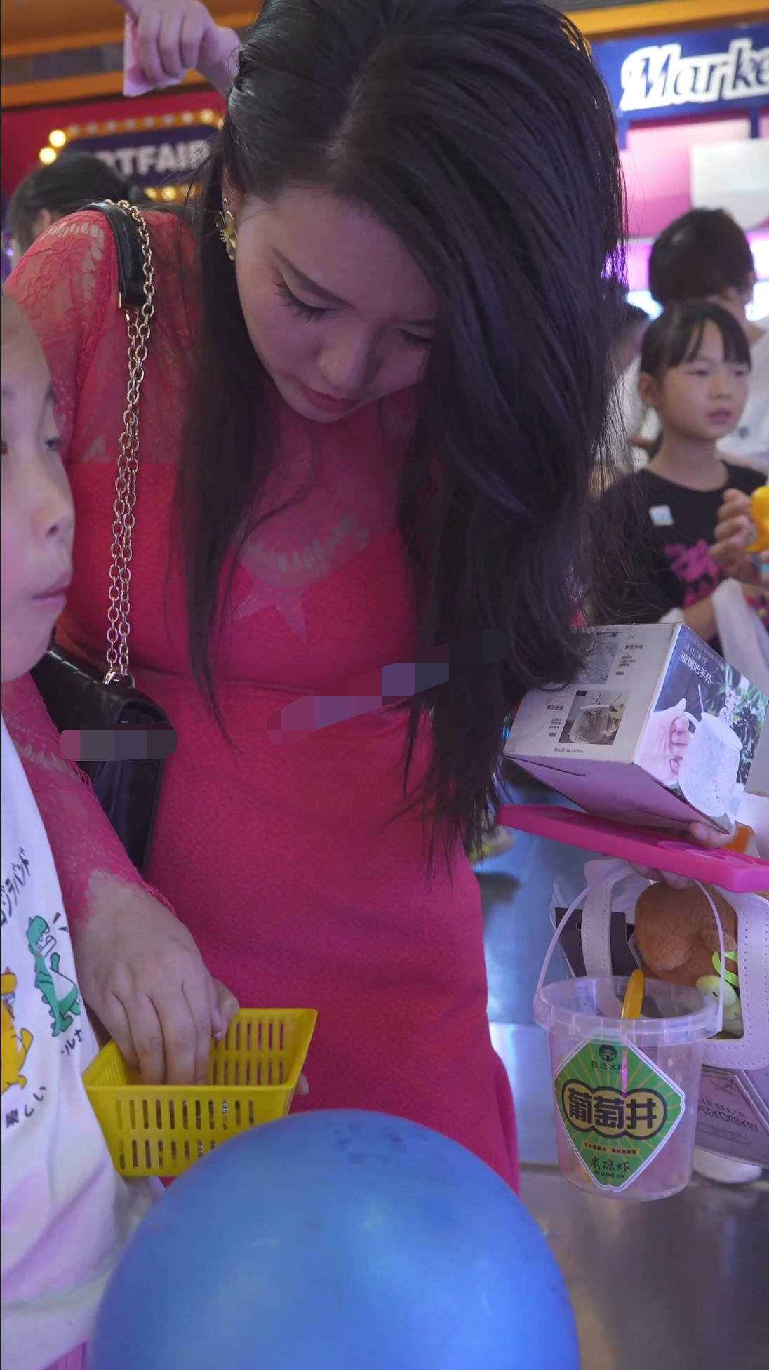 (BC-AA-644)电玩城CD红裙少妇夹娃娃..透明蕾丝内弯腰露屁股缝